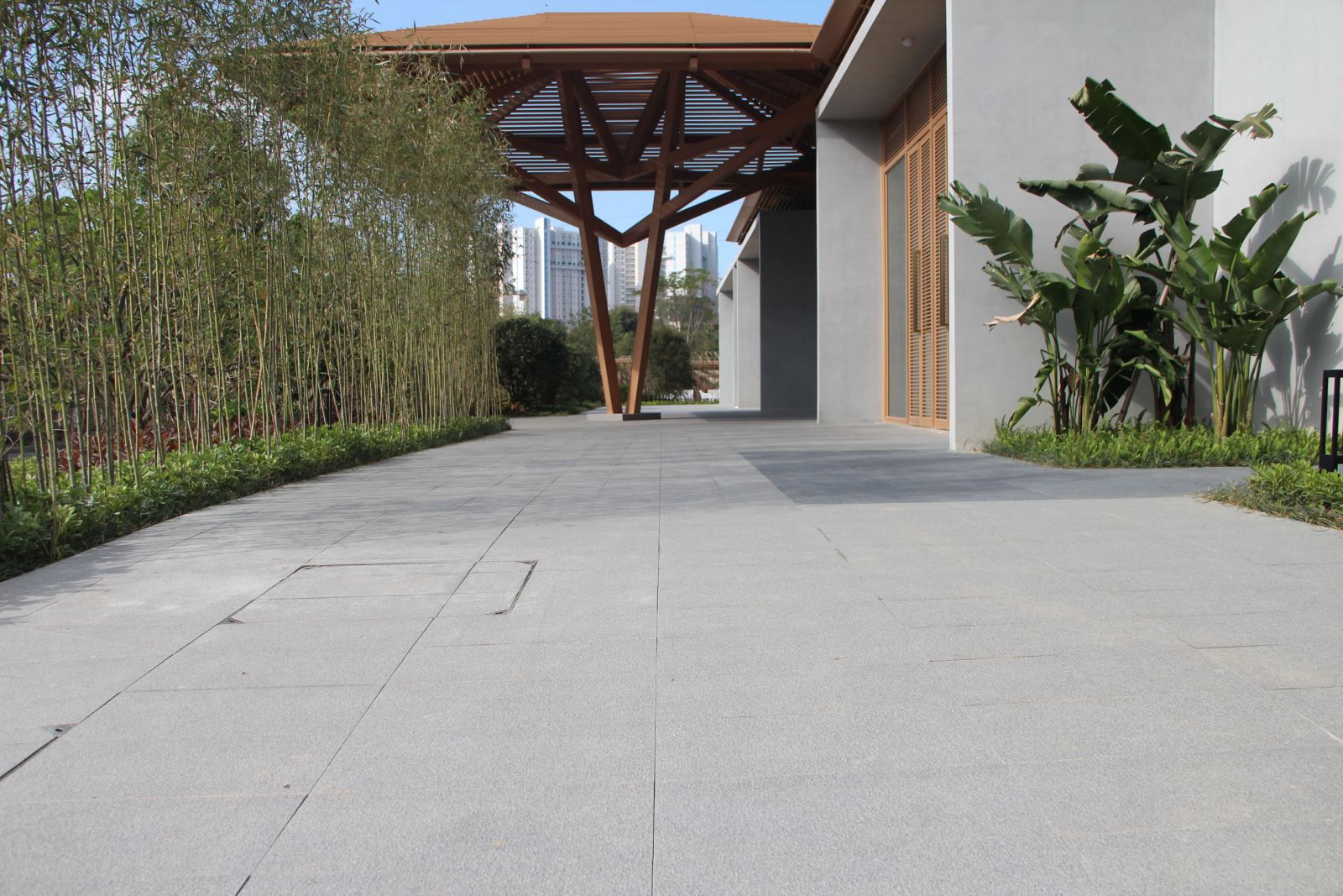 區(qū)域內(nèi)廣場、水景、汀步及別墅庭院采用協(xié)進(jìn)地鋪石瓷磚裝飾,