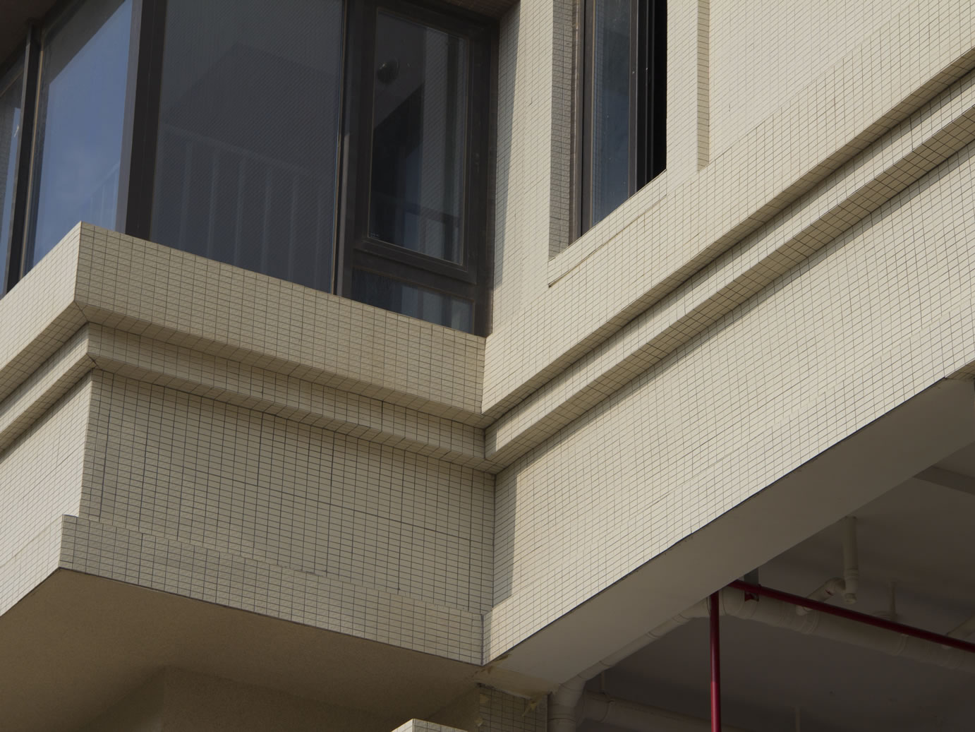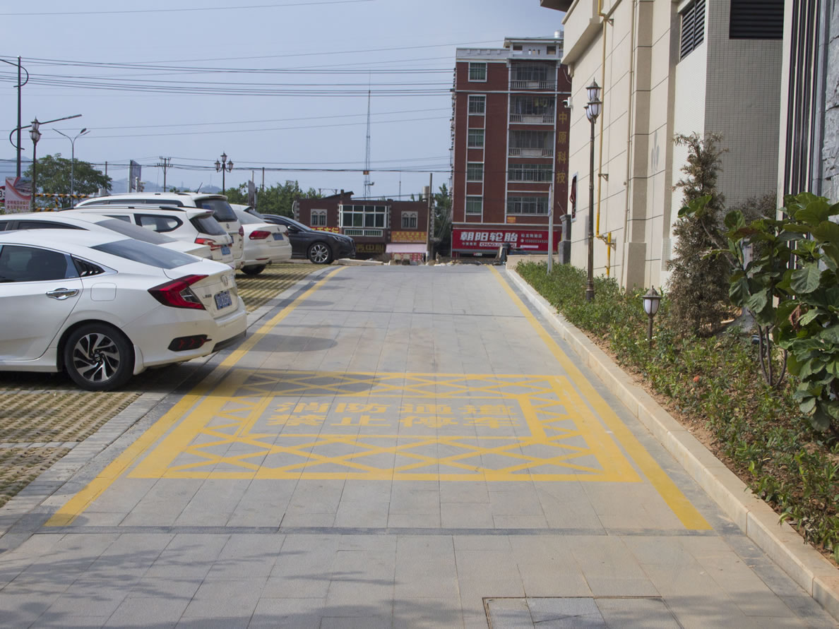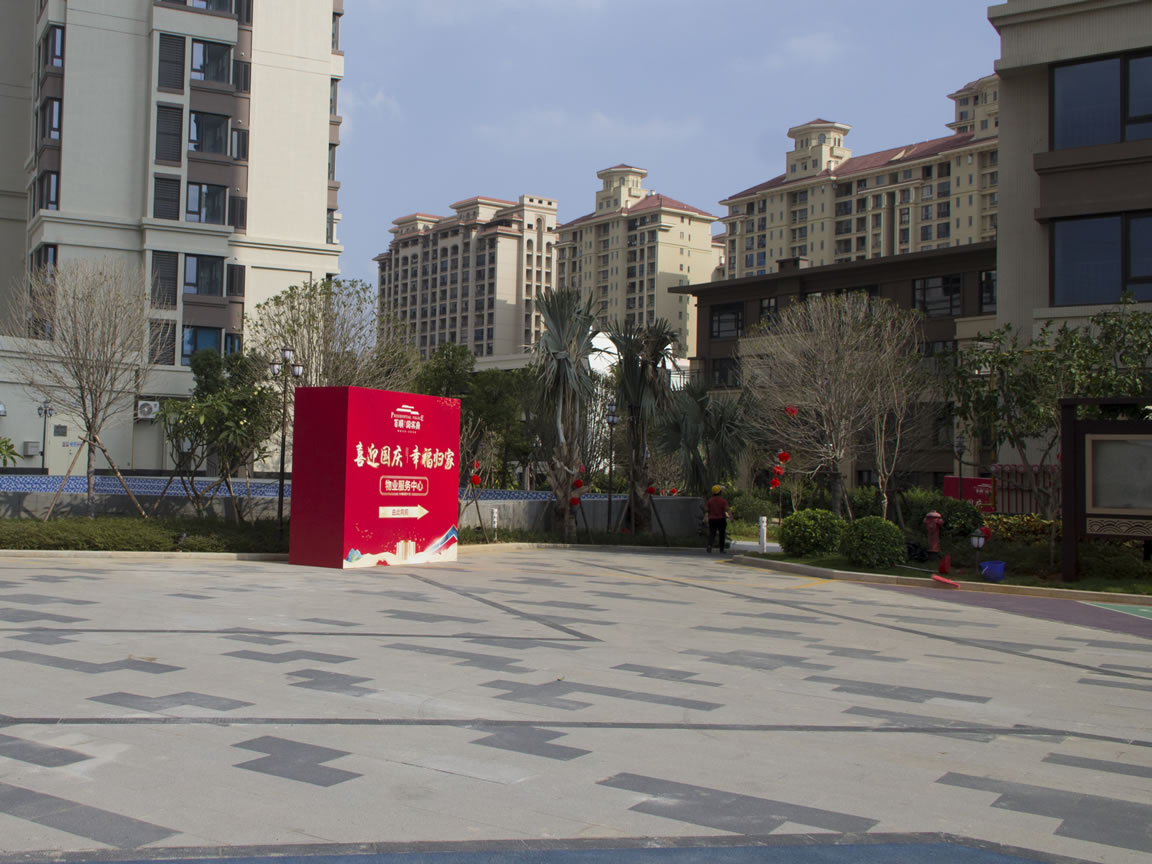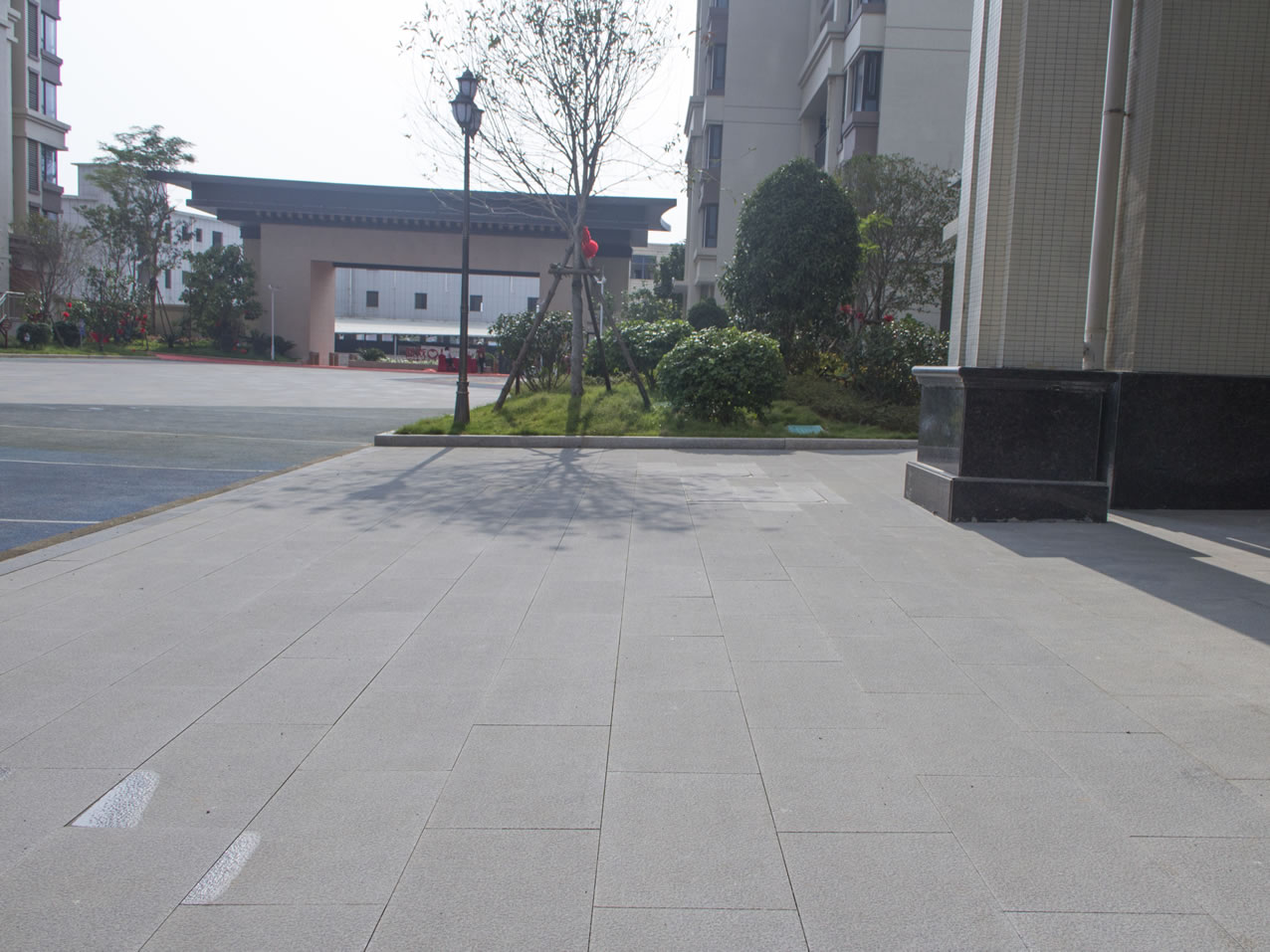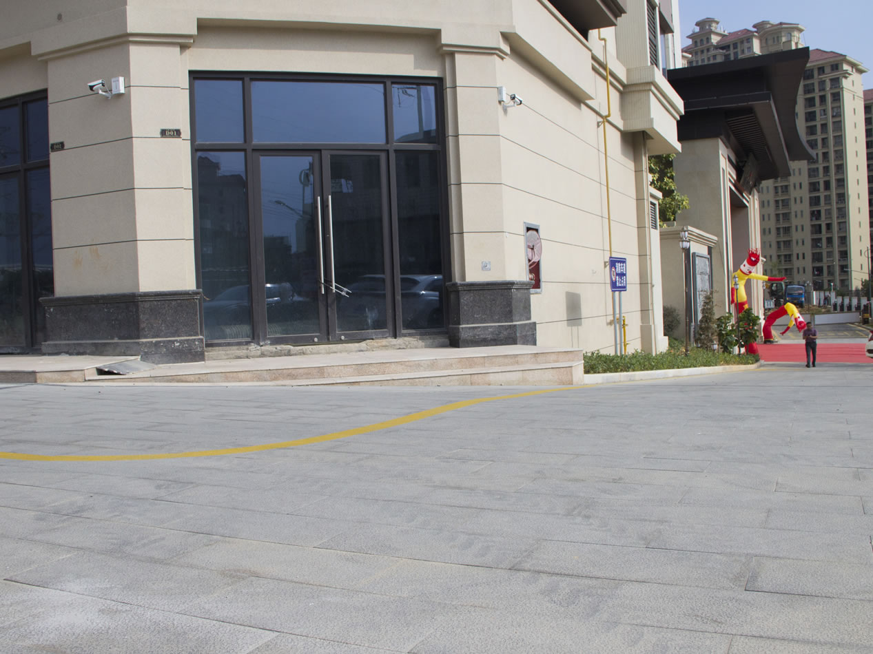 小區(qū)園林使用協(xié)進(jìn)地鋪石鋪貼,樓房外立面使用協(xié)進(jìn)彩碼磚鋪貼,