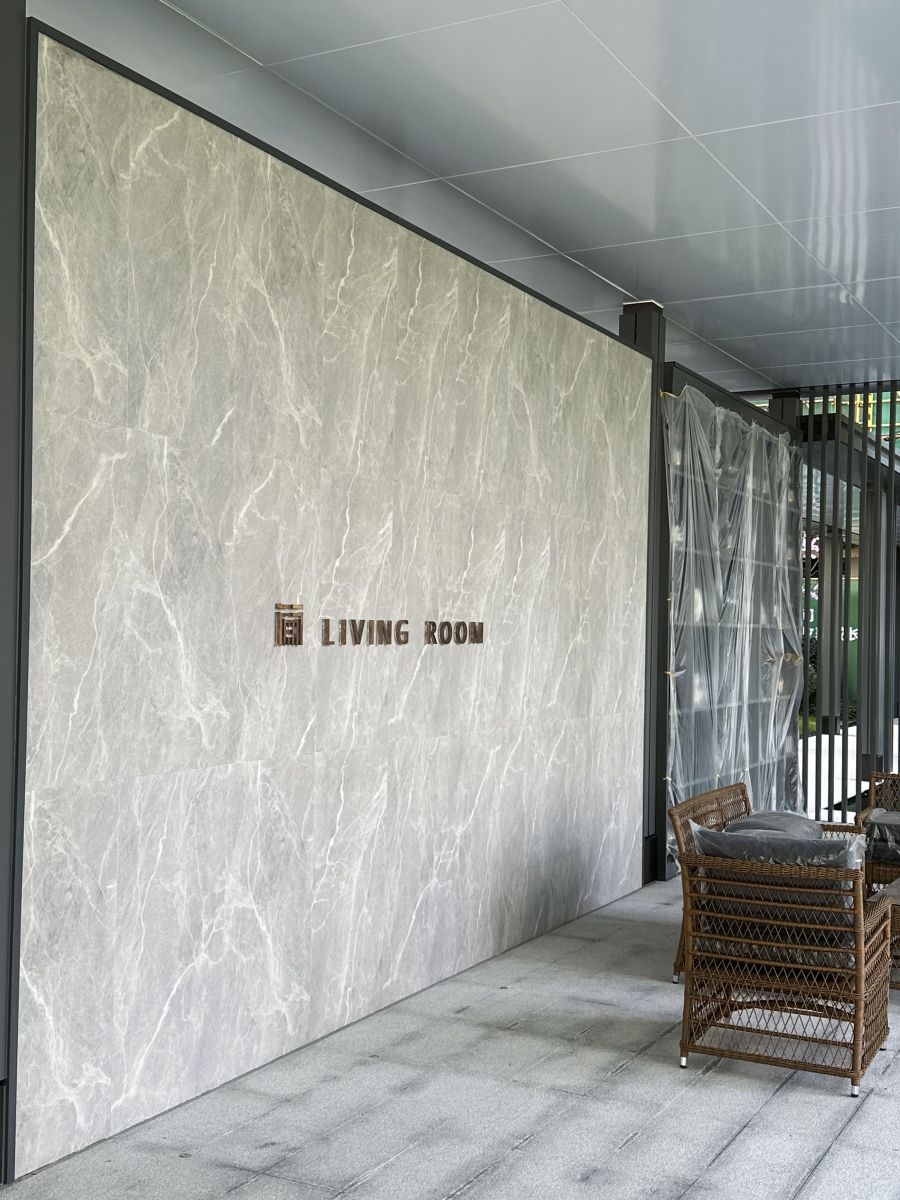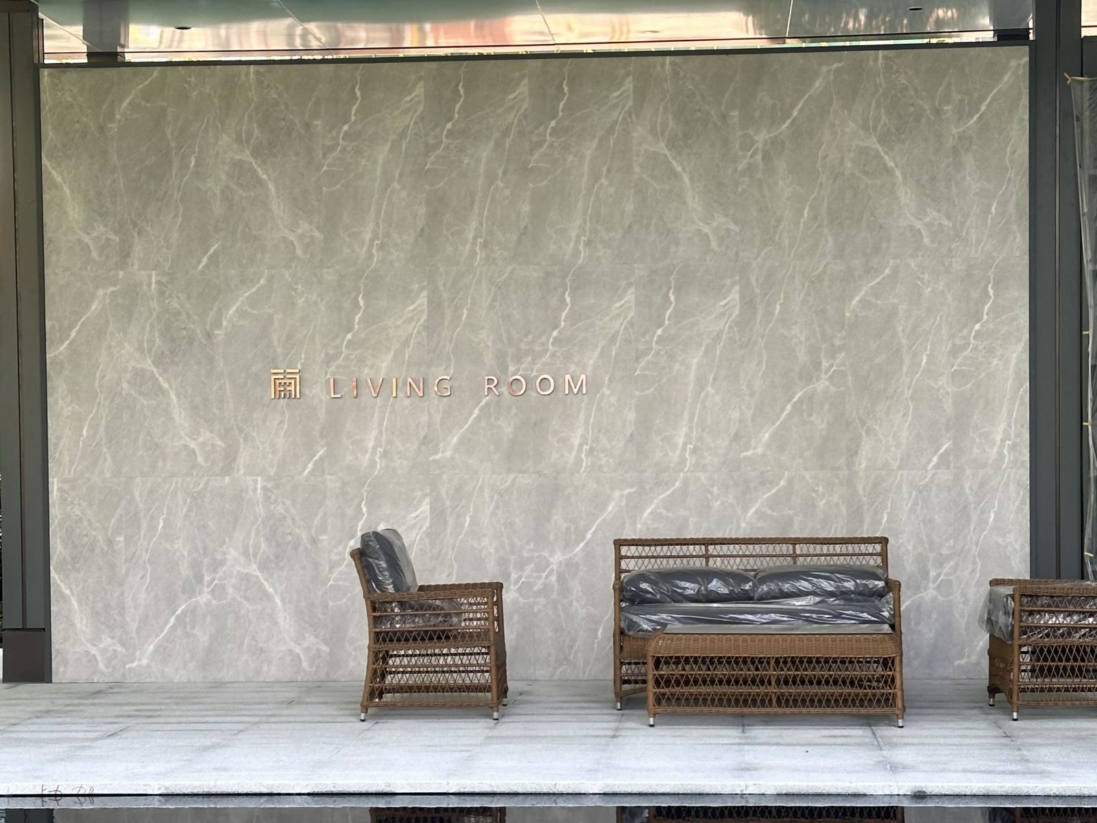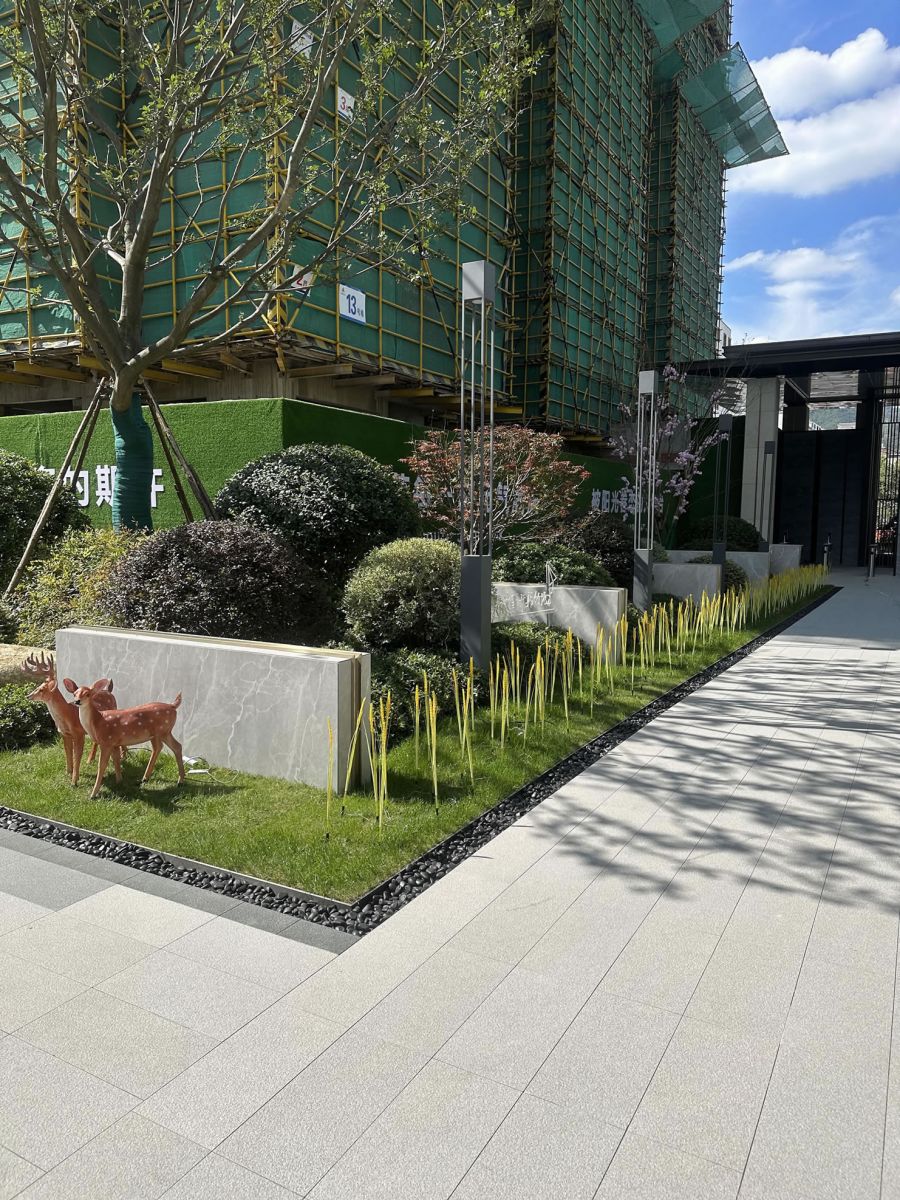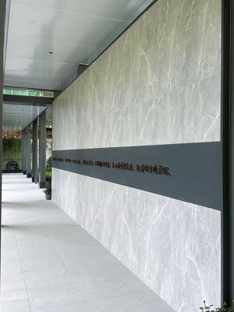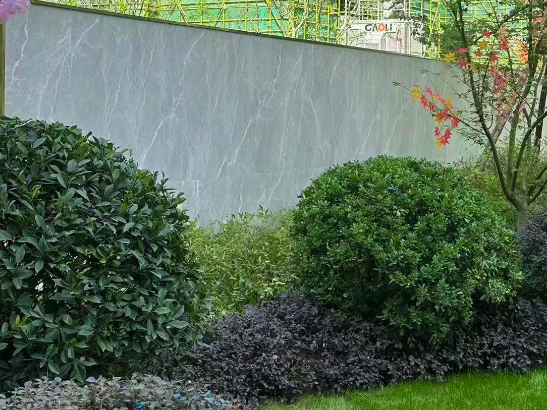 小區(qū)景墻使用600*1200希臘淺灰干掛施工,
