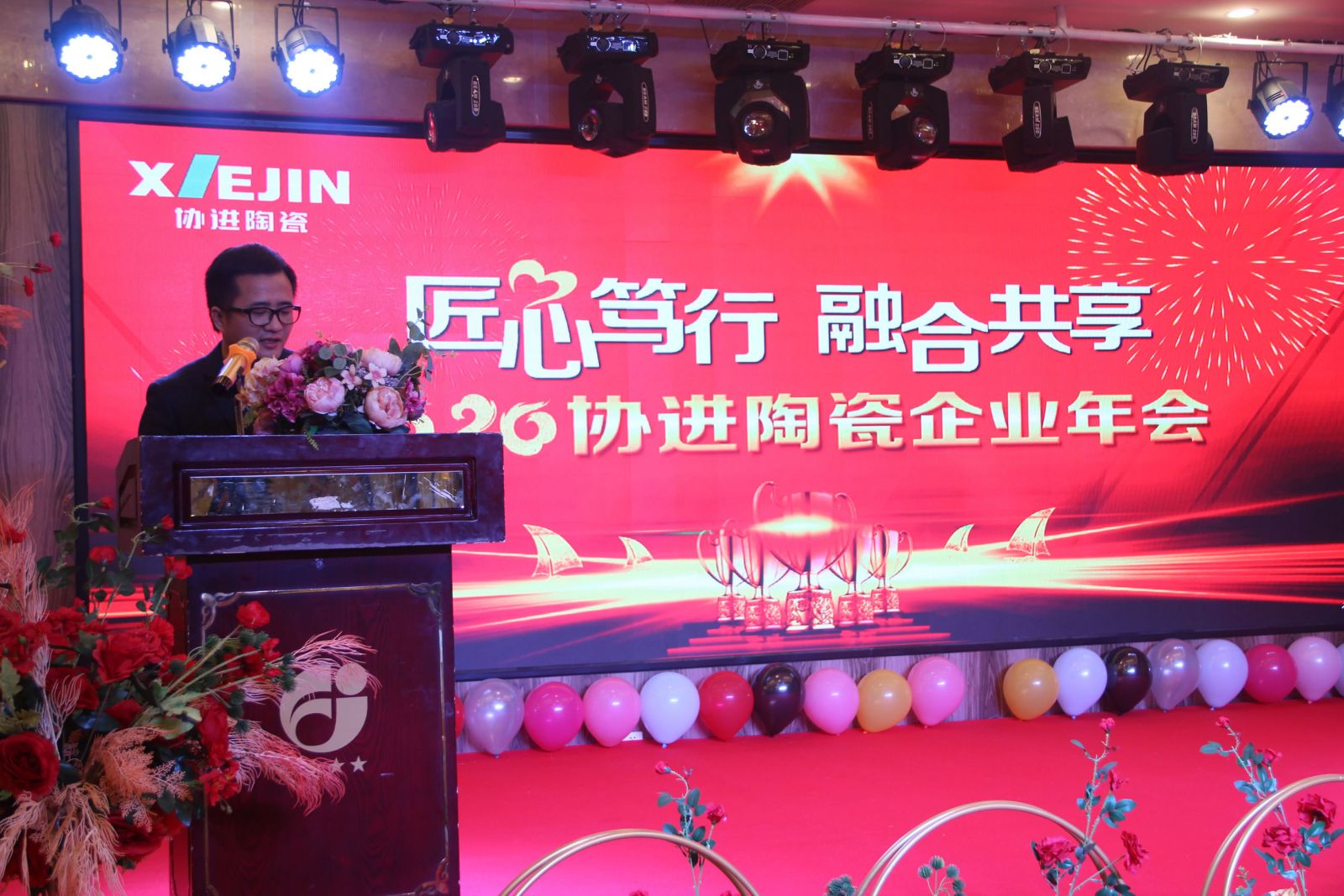 年會上,王少華總經(jīng)理致2020年新年賀詞,回顧2019,展望2020。王總表示,協(xié)進(jìn)公司經(jīng)過過去一段時(shí)期建陶行業(yè)轉(zhuǎn)型升級的洗禮和產(chǎn)業(yè)結(jié)構(gòu)調(diào)整的錘煉,有信心迎接行業(yè)進(jìn)入綠色環(huán)保、智能制造、個(gè)性化定制和家居一體化高質(zhì)量發(fā)展的新一輪挑戰(zhàn)。在新的一年里,公司期盼與全體協(xié)進(jìn)人、合作伙伴、社會各界繼續(xù)攜手努力奔跑,只爭朝夕,追夢前行,不負(fù)韶華!