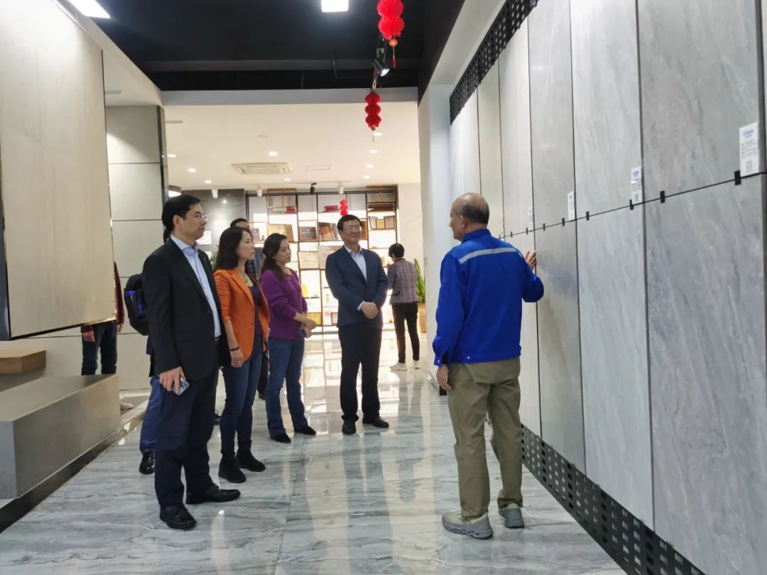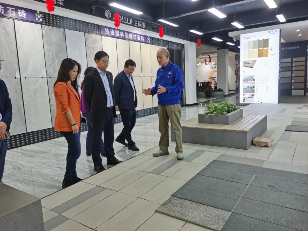 周會長一行在南安協(xié)進公司董事長王家助的介紹下一邊了解企業(yè)30年來的發(fā)展歷程,一邊參觀產品展廳,對協(xié)進陶瓷在大規(guī)格薄板、大板、陶瓷薄板復合保溫一體板、地鋪石等綠色節(jié)能新產品的研發(fā)生產深入了解。希望利用協(xié)會在建筑開發(fā)產業(yè)鏈上的優(yōu)勢和資源,通過此次的商務考察活動,尋求開拓加拿大和北美市場的合作。