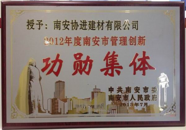 本報(bào)訊:8月19日,南安市創(chuàng)新轉(zhuǎn)型暨金融改革工作推進(jìn)會(huì)在南安人民會(huì)堂隆重召開(kāi),泉州市市長(zhǎng)鄭新聰,南安市委書(shū)記黃南康、市長(zhǎng)王春金等兩級(jí)領(lǐng)導(dǎo),以及南安市工商界、金融界代表200余人參加會(huì)議。會(huì)上表彰了2012年度南安市創(chuàng)新獎(jiǎng)獲獎(jiǎng)單位和個(gè)人,部署加快創(chuàng)新轉(zhuǎn)型、推進(jìn)金融服務(wù)實(shí)體經(jīng)濟(jì)綜合改革工作,進(jìn)一步激發(fā)全市的創(chuàng)業(yè)創(chuàng)新熱情,推動(dòng)行業(yè)、企業(yè)可持續(xù)健康發(fā)展。南安協(xié)進(jìn)建材有限公司憑借多年來(lái)在行業(yè)中的創(chuàng)新工作被授予“2012年度南安市管理創(chuàng)新功勛集體”獎(jiǎng),公司總經(jīng)理王少華應(yīng)邀參加會(huì)議,并代表協(xié)進(jìn)公司上臺(tái)接受表彰。