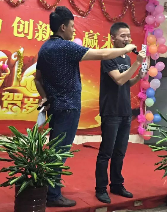 營銷部蔡培源現(xiàn)場帶來的撲克牌游戲展現(xiàn)出多才多藝;品保部曾茂霞的手語舞蹈《爸爸、媽媽》、品保部婁潤碧的女兒舞蹈《快樂你懂得》、技術(shù)部帥哥靚女的舞蹈《練舞功》把晚會推向了高潮。