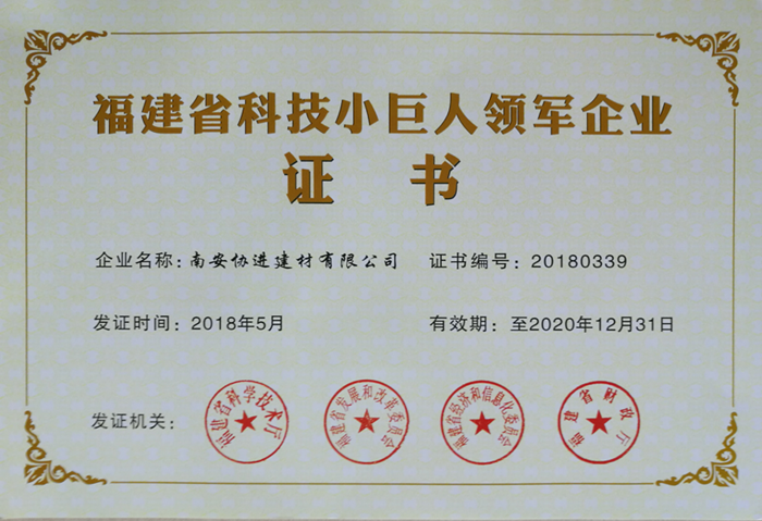 近日,福建省科技廳、福建省發(fā)改委、福建省經(jīng)信委、福建省財(cái)政廳聯(lián)合印發(fā)《關(guān)于公布2018年省科技小巨人領(lǐng)軍企業(yè)新增培育名單等情況的通知》(閩科企金[2018]17號),南安協(xié)進(jìn)建材有限公司等522家企業(yè)符合條件,列入“科技小巨人領(lǐng)軍企業(yè)培育發(fā)展庫”。