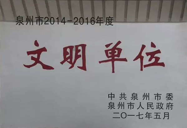 近日,中共泉州市委、泉州市人民政府印發(fā)《關(guān)于表彰2014—2016年度精神文明建設(shè)先進集體和先進個人的決定》(泉委[2017]39號),南安協(xié)進建材有限公司獲評為泉州市2014—2016年度文明單位。