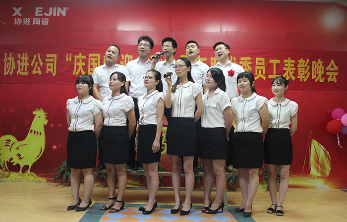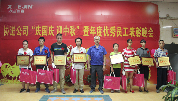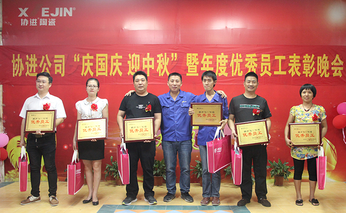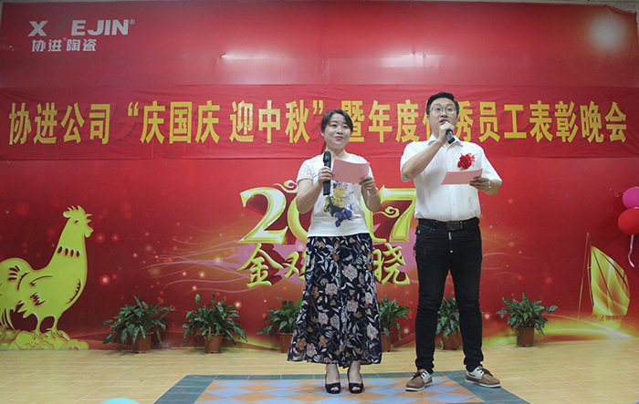 9月29日晚,金秋送爽,星空璀璨,協(xié)進廠區(qū),華燈輝映,彩旗飄揚。為了慶祝即將到來的中華人民共和國68周年華誕,喜迎中秋佳節(jié),同時為了表彰先進、樹立榜樣,鼓勵“人人爭當模范”的工作激情,弘揚“正品、精工、盡美、至善”的企業(yè)理念,倡導“攜手創(chuàng)輝煌,創(chuàng)新求卓越”的協(xié)進精神,協(xié)進陶瓷2017年歡度國慶喜迎中秋暨優(yōu)秀員工表彰文娛晚會在公司禮堂隆重舉行。