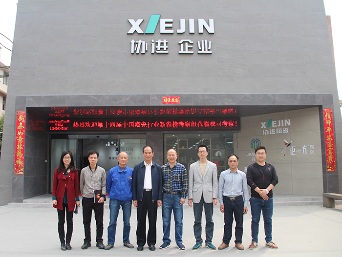 3月18日,中國陶瓷工業(yè)協(xié)會建筑衛(wèi)生陶瓷專業(yè)委員會秘書長黃芯紅,佛山市陶瓷學(xué)會理事長徐平等陶瓷行業(yè)新銳榜評委會一行5人來協(xié)進(jìn)公司考察。王家助董事長熱情接待,介紹了公司的企業(yè)文化,發(fā)展理念以及公司開發(fā)的新產(chǎn)品。評審人員對協(xié)進(jìn)公司各方面表示非常滿意。希望我們繼續(xù)在中國陶瓷行業(yè)新銳榜中榜上有名,取得好成績。